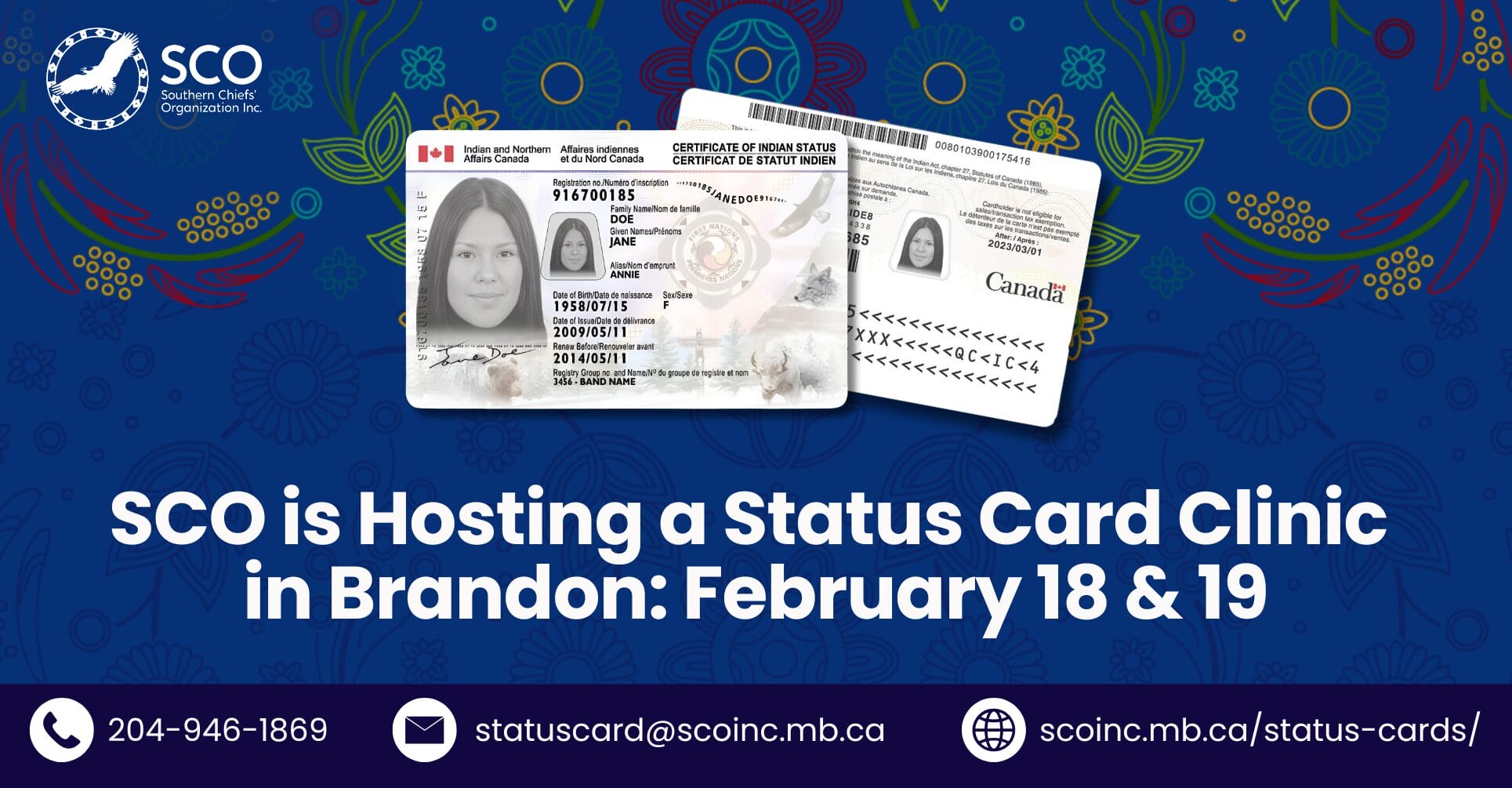 SCO is Hosting a Status Card Clinic in Brandon: February 18 & 19